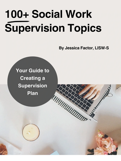100+ Social Work Supervision Topics is here to assist social workers in completing supervision requirements for clinical licensure. With 136 unique ideas to bring to supervision sessions, this guide is useful to the social worker pursuing training or clinical supervision for licensure, as well as to the supervisor mentoring and providing supervision in their practice. Completing supervision requirements in order to move forward in the clinical licensure process can be time consuming and difficult. However, with this guide as a blueprint, meeting supervision requirements for licensure is achievable. Whether the social work supervisee is just beginning their supervision journey or needing support and fresh ideas, 100+ Social Work Supervision Topics is the ultimate resource.